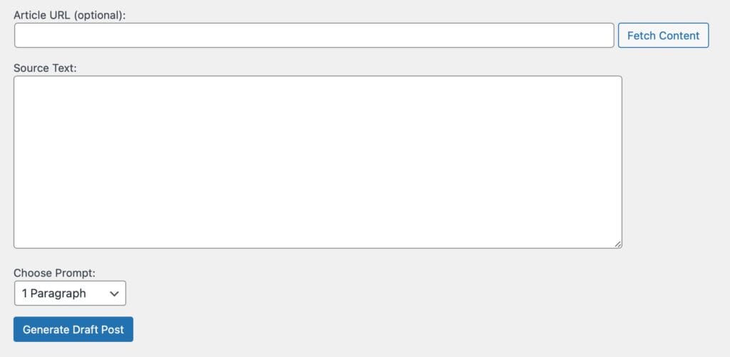 Mit Hilfe von Claude 3.5 Sonnet habe ich mir ein WordPress-Plugin erstellt. Seitdem habe ich dieses Eingabeformular in meinem Backend: